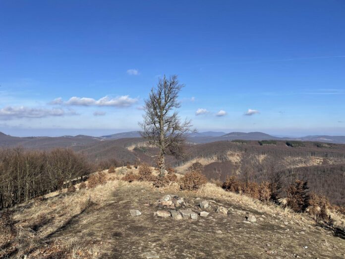 Zvlnený lesný hrebeň vás dovedie po necelých dvoch hodinách na vrch Skalnatá, ktorý stojí priamo na červenej turistickej trase.