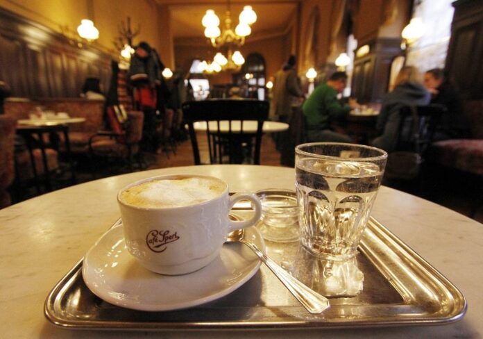 Dve kávy bez mlieka poprosím a nejakú slovenskú minerálku. Chladenú, jemne perlivú, vravíme napríklad, keď sa objaví čašník.