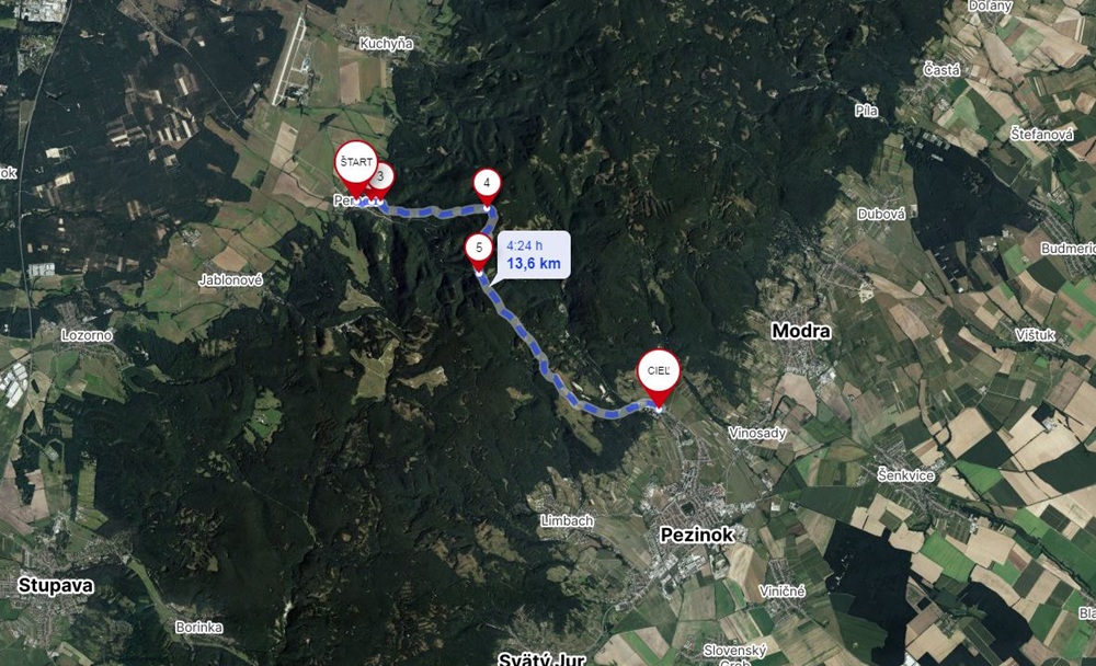 Odtiaľ sa už len presunúť k autu cca 800 m na parkovisko pred Nemocnicu Pezinok. Treba dať pozor, je to hlavná frekventovaná trasa pre autá smer Baba.