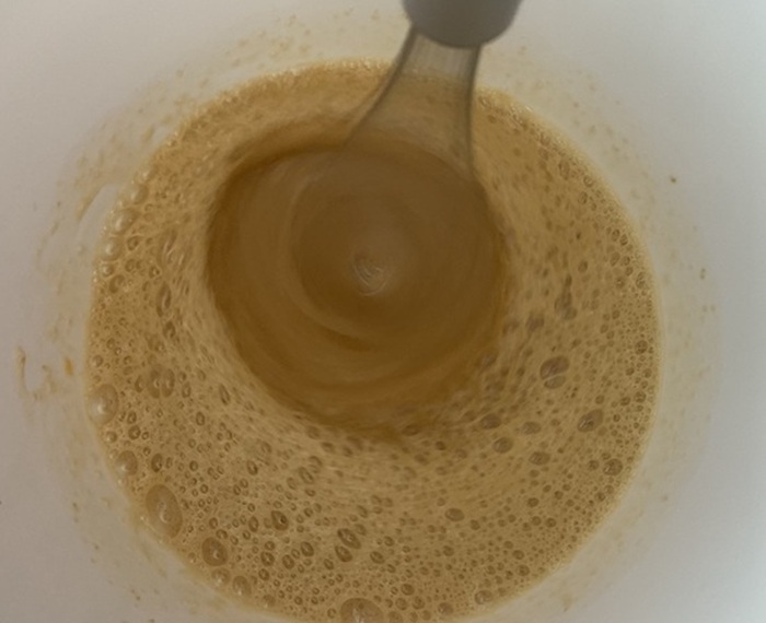 2. Následne vyšľaháme vajíčka za pomoci mixéra, spolu s vanilkovým a trstinovým cukrom, kým nevznikne jemná pena. Pridáme aj citrónovú kôru a znova zapracujeme mixérom.