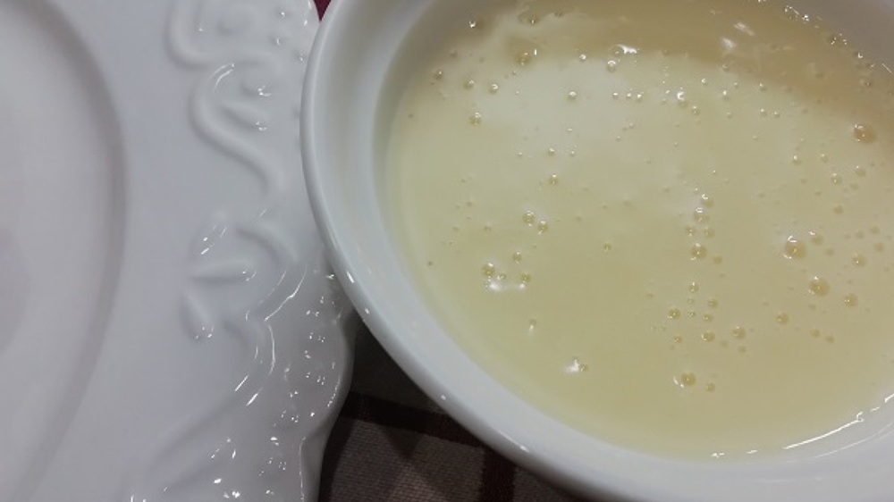 7. Krém pripravíme tak, že do hrnca dáme variť 2/3 mlieka s cukrom. V inej nádobe zmiešame zbytok mlieka s pudingom a žĺtkami. Vlejeme do horúceho mlieka, uvaríme lahodný krém. Môžeme ho vylepšiť rumom.